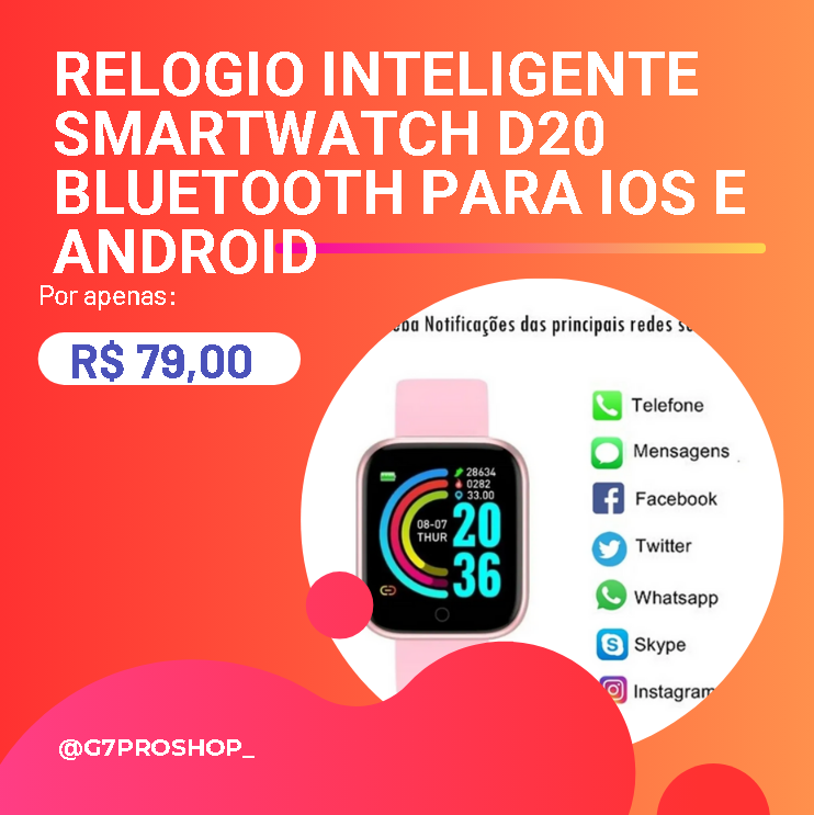 O relógio Smartwatch D20 além de um design lindo e leve ele também possui diversas funções: